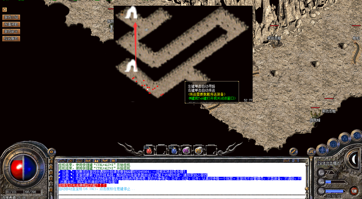注意:法师玩家也可以前往未知暗殿召唤900血量的巨型多角虫,传送员直接传送需要一定数量的金币