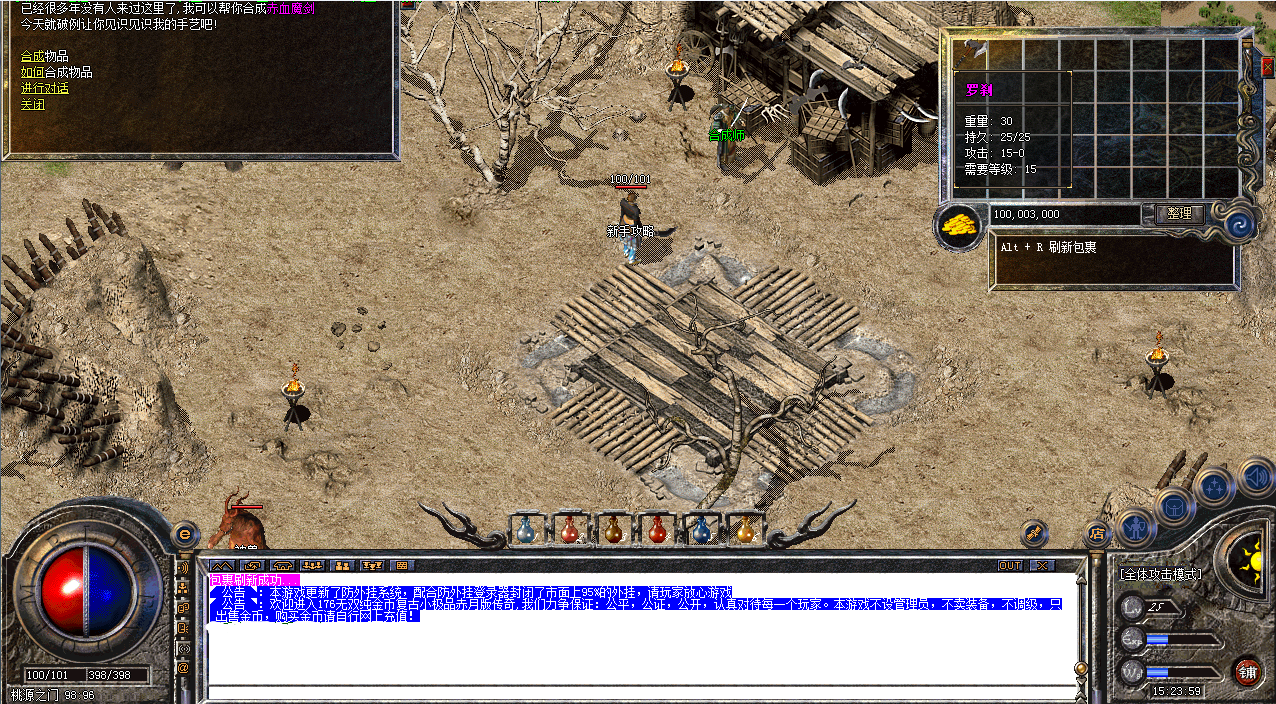 前往桃源之门(通过石墓7层进入或者使用高级地图传送卷进入),找到合成师,合成赤血魔剑